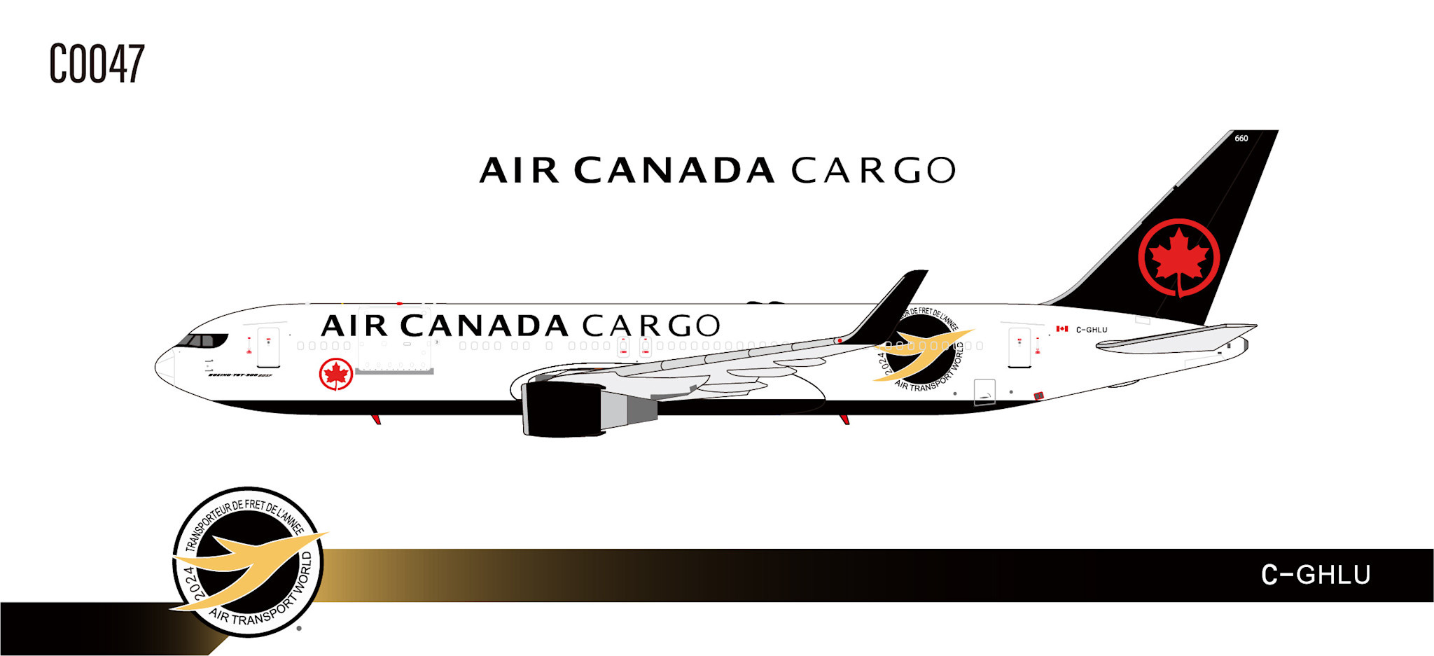 B767-300F Air Canada Cargo 2017 livery Air Transport World 2024 logo C-GHLU 1:400 +pre-order+