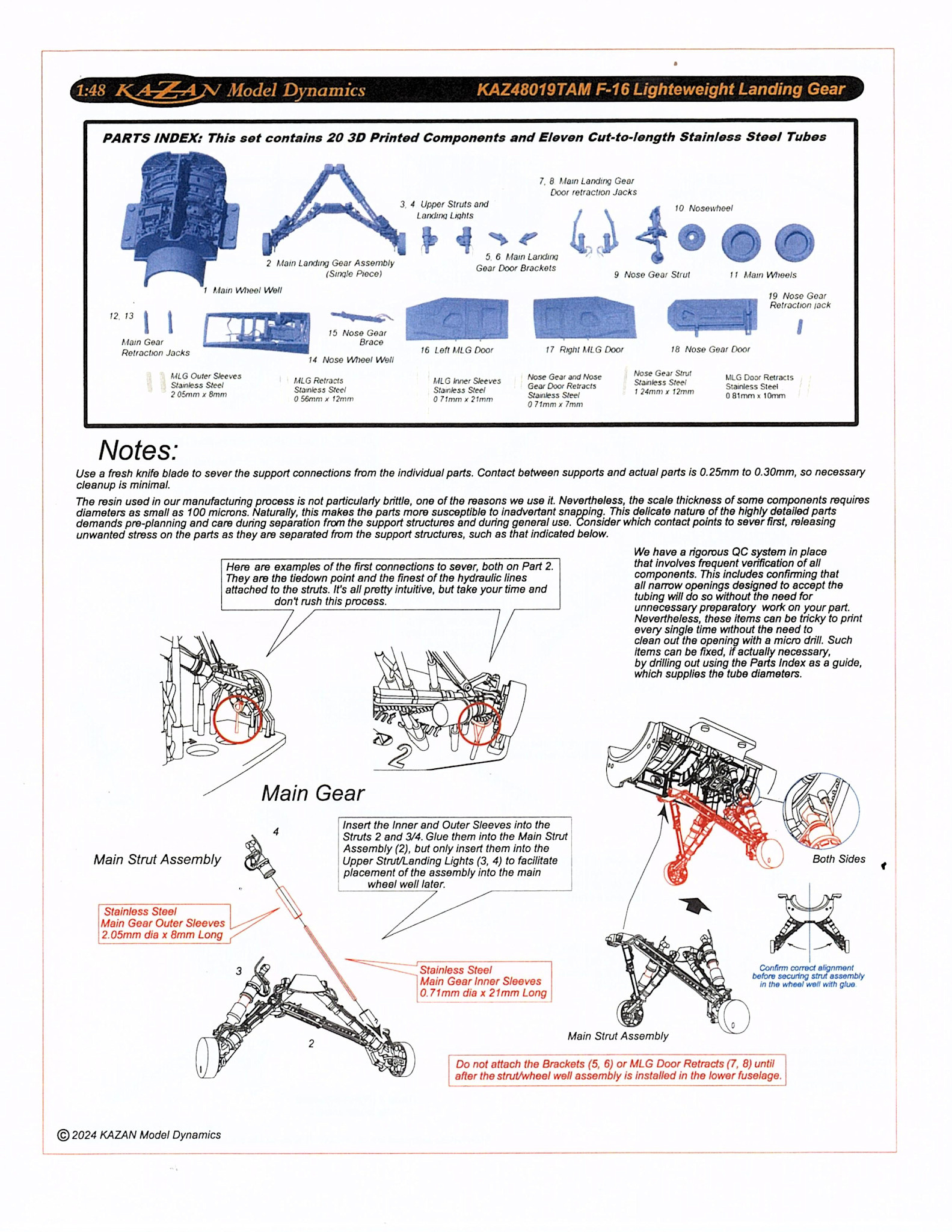 KAZAN F-16A/B/C/D Lightweight Landing Gear set 1:48 [3D printed parts for Tamiya F16 kits]