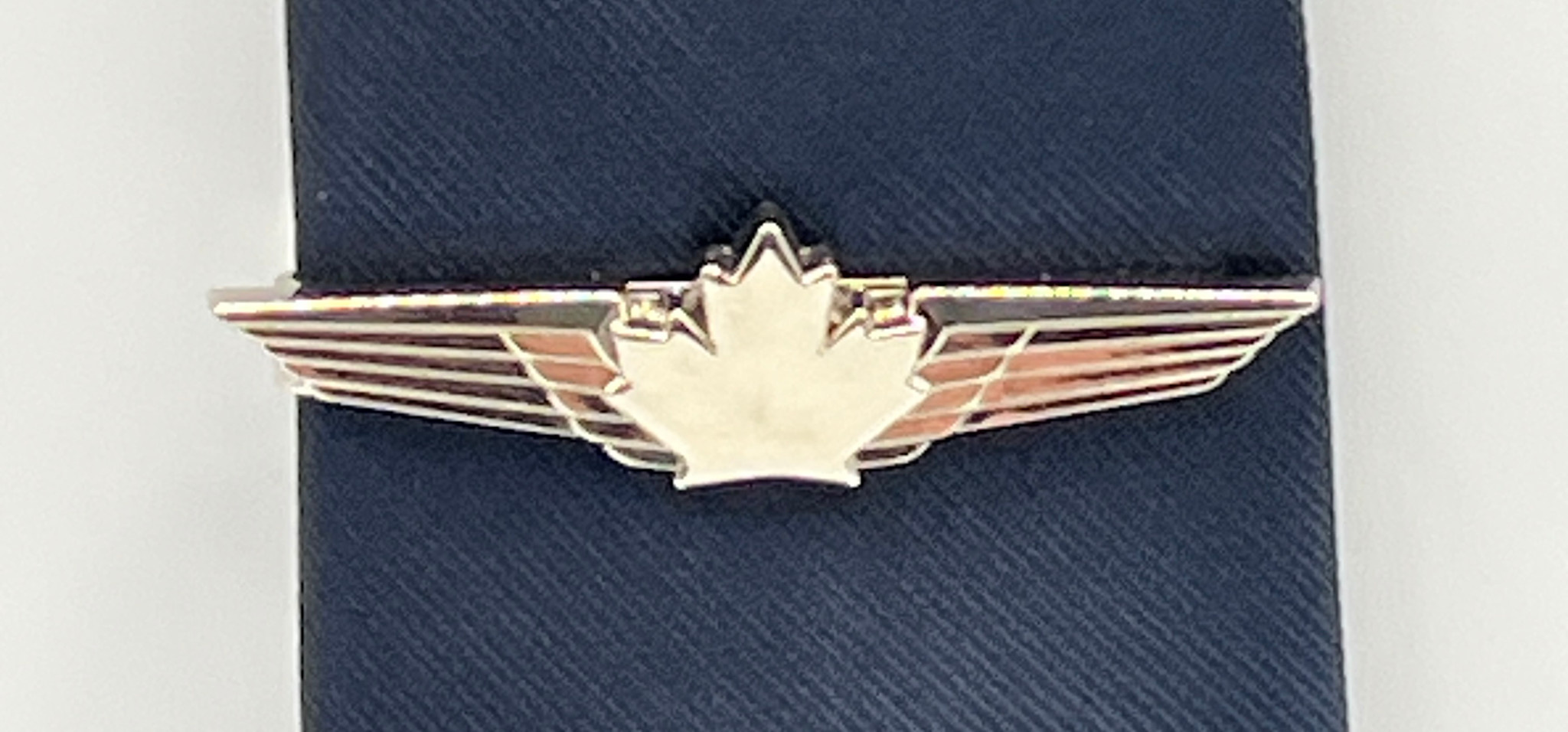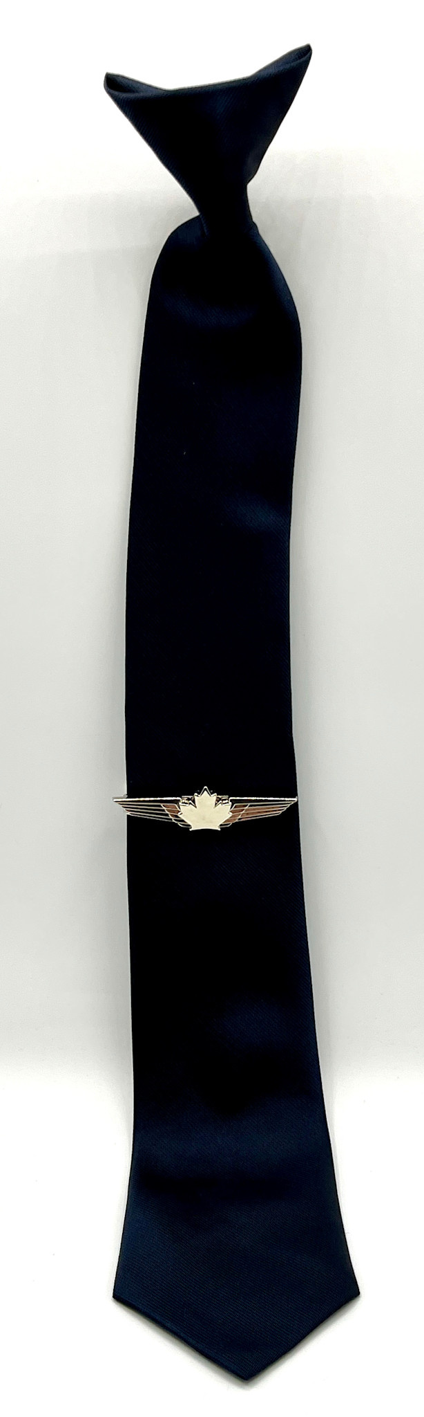 Silver-rhodium plated Maple Leaf wings tie bar.